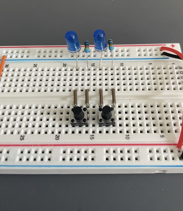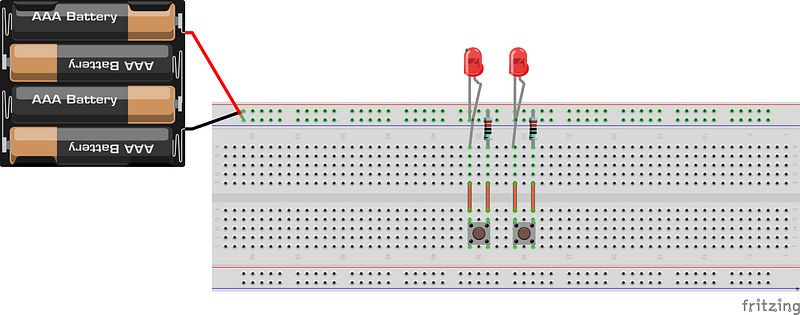 Copy this set up adjacent to our first circuit to use both push buttons