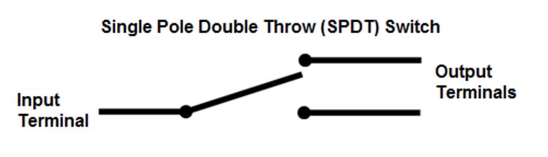 The circuit diagram below shows how toggling the input (middle) pin prompts connection between either output pin.