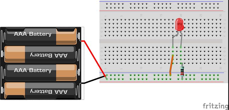 Now connect a power source as shown in the fritzing diagram below and watch your LED shine!